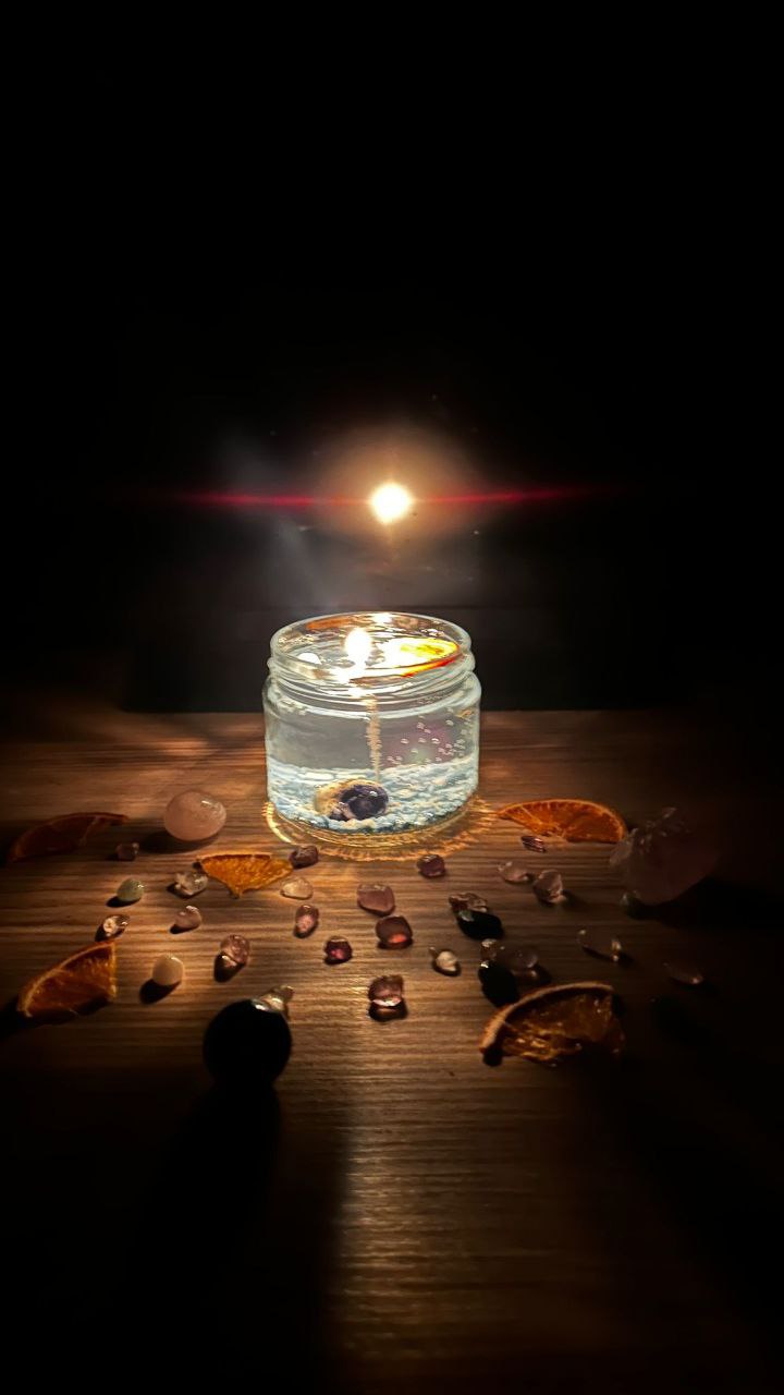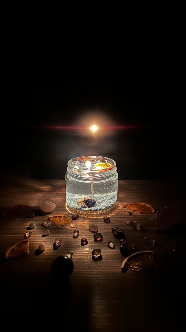 Mumu yaktığın anda, kuvars taşının berrak ışıltısı ortama yayılır. İçinden yükselen bu ışık, sanki sana der ki: “Bugün yeniden başlamak için en doğru an.”